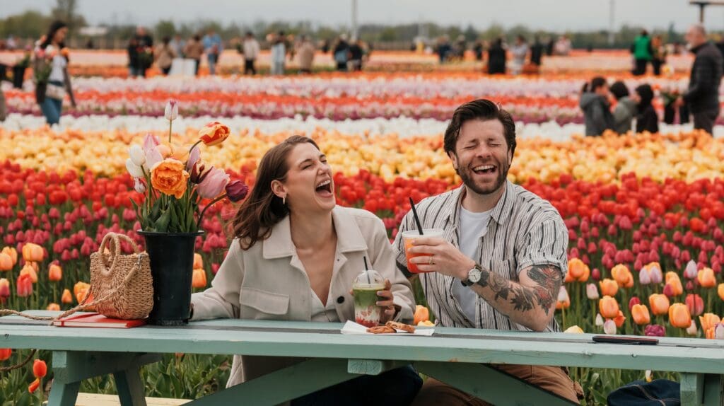 Spend 1–2 hours wandering the fields, picking your tulips, and capturing photos at every turn. Grab lunch from one of the on-site food trucks and enjoy the picnic area with 50 tables, umbrellas, and views of the flowers.